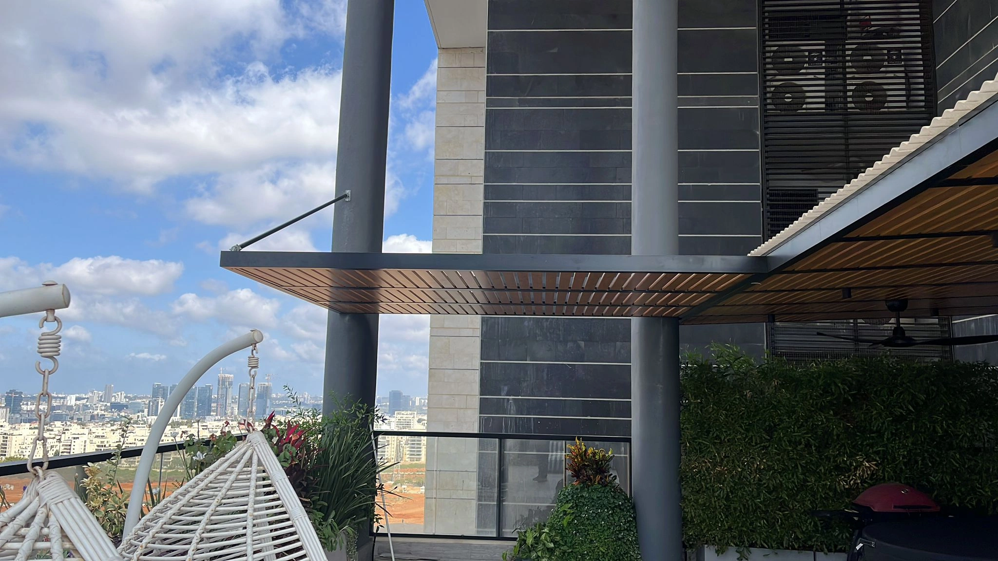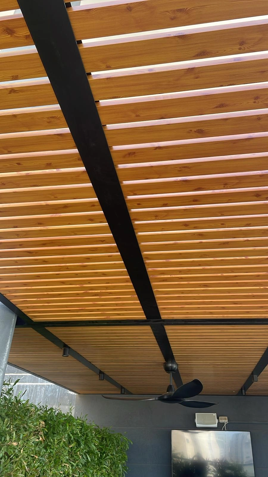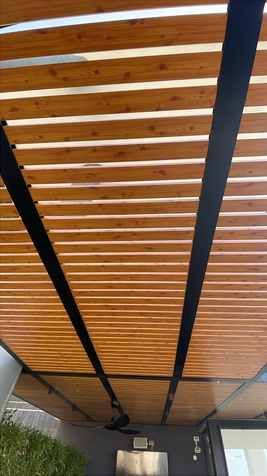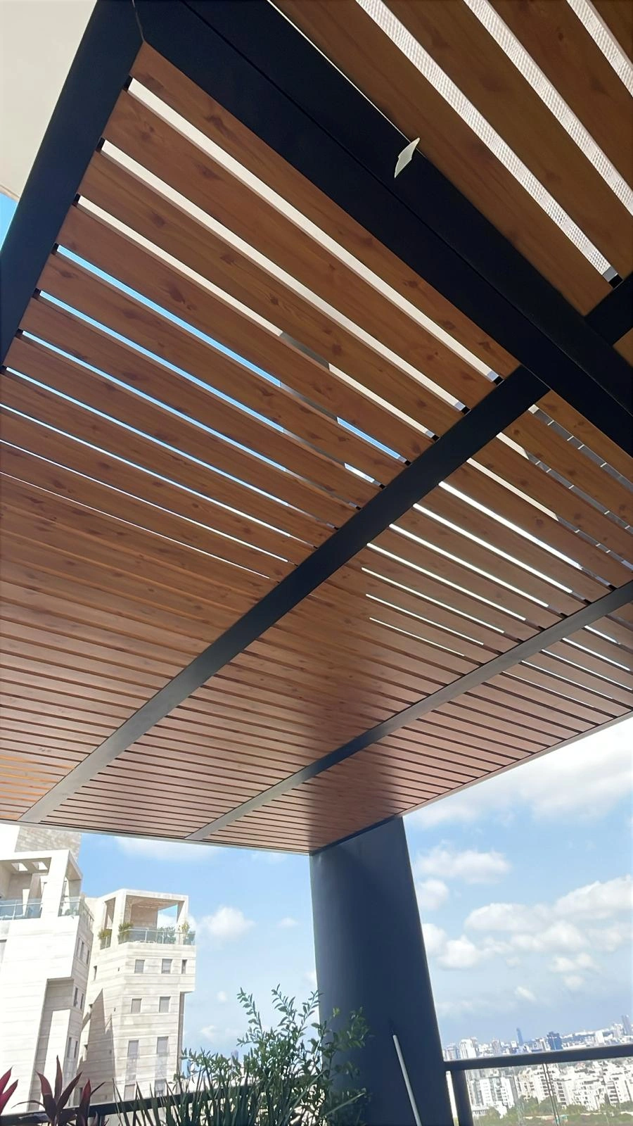 פרגולה מאלומיניום דגם דורלי קלאסי דמוי עץ לוחות 70/20 רווח 2 ס"מ ניתן לתלייה לפי הנתונים בשטח מתאים לבתים פרטיים מרפסות פינות מנגל חצר ולכל מקום אשר תירצו לעשו בו קירויי ניתן להוסיף סנטף לפי הצורך.